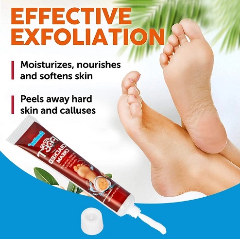 🌿 শুষ্ক ও ফাটলযুক্ত ত্বক মসৃণ করে – পা, হাত ও লেগের খসে যাওয়া ত্বক দ্রুত নরম করে।